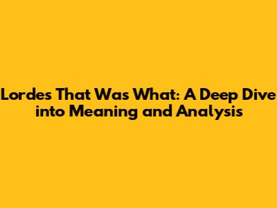 Hey guys! Ever found yourself completely captivated by a song, digging deep into its lyrics, trying to unravel the story it tells? Well, today, we’re doing just that with Lorde's mesmerizing track, "That Was What." Lorde, known for her introspective and poetic songwriting, has a knack for creating songs that resonate on multiple levels. This particular song is no exception. So, buckle up as we explore the layers of meaning, dissect the lyrical genius, and uncover what makes "That Was What" such a compelling piece of art. We'll explore the context in which the song was released, the lyrical themes it explores, and the overall impact it leaves on listeners. Whether you're a die-hard Lorde fan or just someone who appreciates thoughtful music, there's plenty to discover. Let’s dive in!