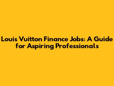 Understanding Finance Roles at Louis Vuitton