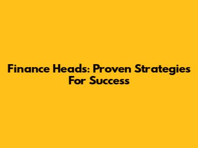 Finance Heads: Proven Strategies For Success