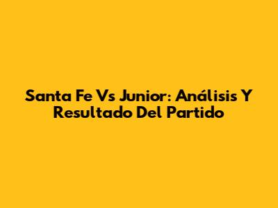 Santa Fe Vs Junior: Análisis Y Resultado Del Partido