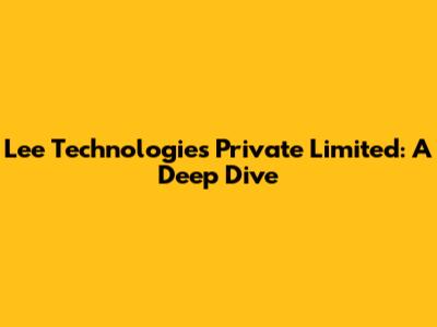Lee Technologies Private Limited: A Deep Dive