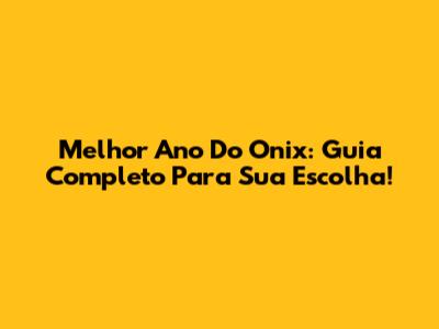 Melhor Ano Do Onix: Guia Completo Para Sua Escolha!