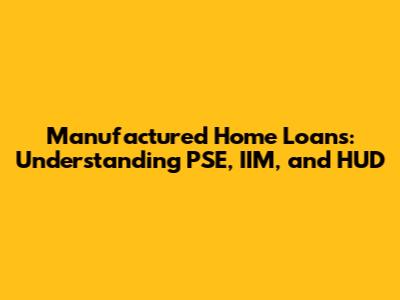 Navigating the world of manufactured home loans can feel like deciphering a secret code, especially when you encounter acronyms like PSE, IIM, and HUD. But don't worry, guys! This guide is here to break down everything you need to know about securing a loan for your dream manufactured home. We'll explore the roles of PSE (Participating Statistical Entity), IIM (Independent Inspection and Monitoring), and HUD (Department of Housing and Urban Development) in the financing process, ensuring you're well-informed and confident every step of the way. Understanding these key components is crucial for a smooth and successful home buying experience. Let’s dive in and demystify the jargon, so you can focus on what truly matters: finding the perfect manufactured home for you and your family. Think of this as your friendly cheat sheet to understanding the complexities of manufactured home financing!