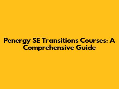 Penergy SE Transitions Courses: A Comprehensive Guide