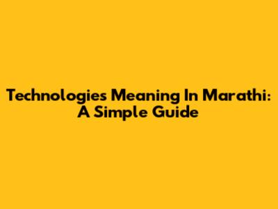 Technologies Meaning In Marathi: A Simple Guide