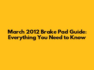 Step-by-Step Guide to Replacing Brake Pads on Your March 2012