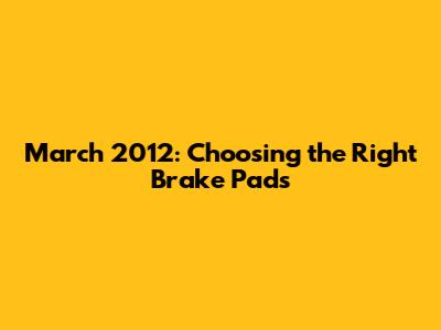 Factors to Consider When Choosing Brake Pads for Your March 2012