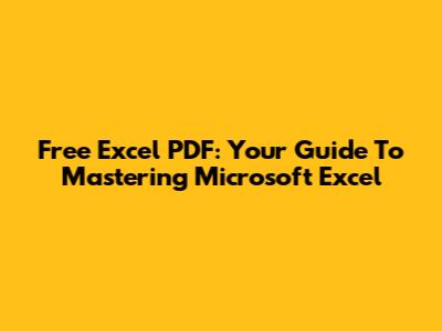 Free Excel PDF: Your Guide To Mastering Microsoft Excel