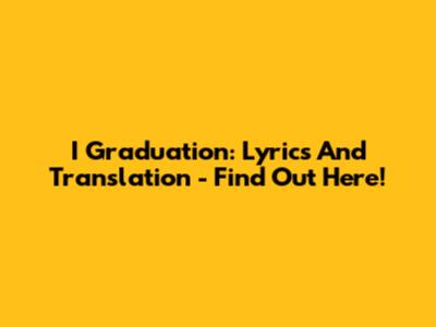 I Graduation: Lyrics And Translation - Find Out Here!