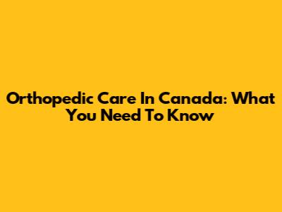 Orthopedic Care In Canada: What You Need To Know