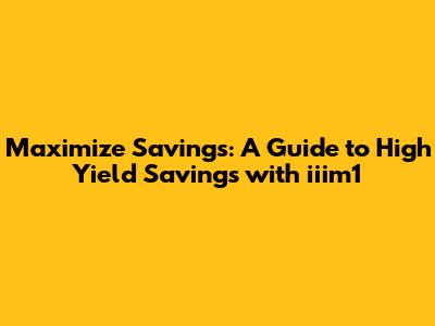 Hey guys! Are you looking to boost your savings and make your money work harder for you? Then you've come to the right place. Let's dive into the world of high-yield savings accounts and explore how iiim1 Finance can be your ticket to financial growth. In this comprehensive guide, we'll break down everything you need to know about high-yield savings, how they compare to traditional savings accounts, and why iiim1 could be the perfect choice for you.