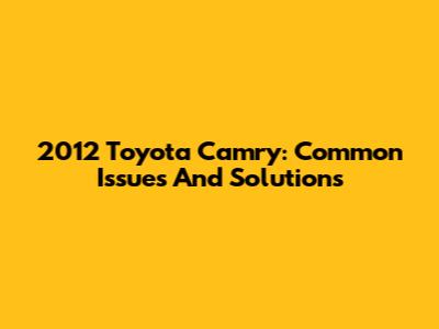 2012 Toyota Camry: Common Issues And Solutions