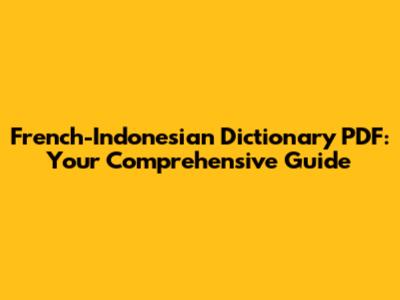 French-Indonesian Dictionary PDF: Your Comprehensive Guide