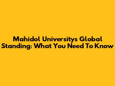 Mahidol University's Global Standing: What You Need To Know