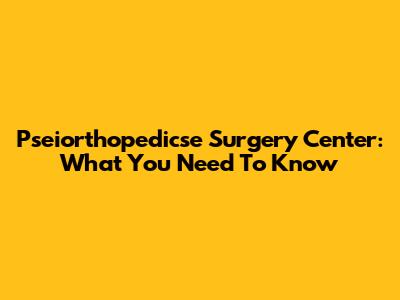 Pseiorthopedicse Surgery Center: What You Need To Know