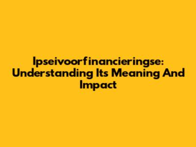 Ipseivoorfinancieringse: Understanding Its Meaning And Impact