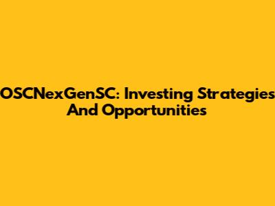 OSCNexGenSC: Investing Strategies And Opportunities