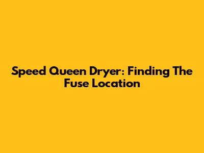 Speed Queen Dryer: Finding The Fuse Location