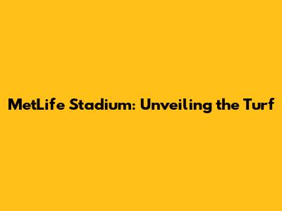 Conclusion: The Turf at MetLife Stadium