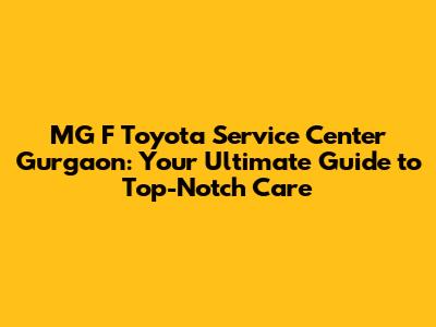 Hey guys! Are you an MG F Toyota owner in Gurgaon? Finding a reliable service center that truly understands your car can feel like searching for a hidden treasure. You want a place that not only fixes your car but also treats it with the care it deserves, right? Well, you're in luck! This guide will be your go-to resource, giving you the lowdown on the best MG F Toyota service centers in Gurgaon. We'll cover everything from what to look for, to what services they offer, and even how to snag the best deals. Buckle up, because we're about to dive deep into the world of MG F Toyota car care in Gurgaon!