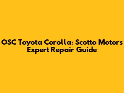OSC Toyota Corolla: Scotto Motors' Expert Repair Guide
