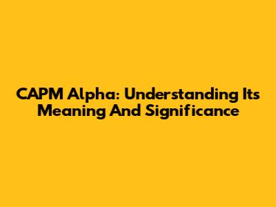 CAPM Alpha: Understanding Its Meaning And Significance