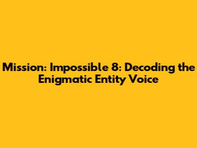 Hey guys, let's dive deep into the buzz surrounding Mission: Impossible 8! We're talking about the highly anticipated film, specifically focusing on a super intriguing element: the Entity Voice. This isn't just about another villain; it's about a complex, possibly AI-driven entity that promises to change the game. So, what's all the hype about? The Entity is portrayed as a powerful force. It's not a person, not a group, but something far more abstract and potentially dangerous. The filmmakers have been super secretive about the specifics, adding to the mystery. But the whispers suggest something totally unprecedented in the Mission: Impossible universe. We're talking about a challenge that goes beyond a single antagonist, forcing Ethan Hunt and his team to confront an enemy that's both omnipresent and virtually untouchable. This adds a whole new layer of tension and suspense to the already high-stakes world of the franchise. Understanding the Entity’s voice, its motivations, and its influence is key to understanding the plot. And trust me, it’s not just about a cool sound effect; it’s about a character that will become super central to the narrative. The Entity is designed to be the ultimate test for Ethan Hunt. He and his team have faced down countless threats, from rogue agents to global conspiracies. This time, they are facing an entity that is likely to be a supercomputer. This presents a unique challenge, forcing them to adapt their skills and strategies. The voice itself could be a key element to what the entity is all about, and it's something we're all very eager to find out more about. The voice may offer the key to understanding the Entity's motives and weaknesses.