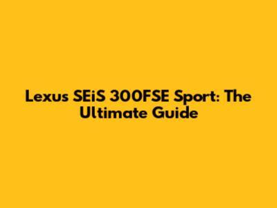 Lexus SEiS 300FSE Sport: The Ultimate Guide