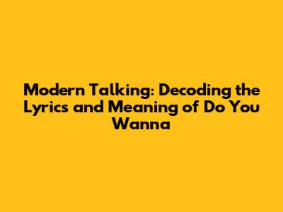 Hey music lovers! If you're anything like me, you've probably found yourself humming along to the catchy tunes of Modern Talking at some point. And let's be real, who hasn't grooved to their iconic hit, "Do You Wanna"? But have you ever stopped to really dive into the lyrics and understand what the song is all about? Well, buckle up, because we're about to embark on a lyrical journey to uncover the magic behind this 80s classic.