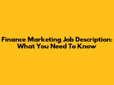 Finance Marketing Job Description: What You Need To Know
