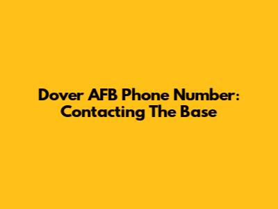 Dover AFB Phone Number: Contacting The Base