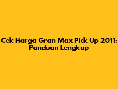 Cek Harga Gran Max Pick Up 2011: Panduan Lengkap