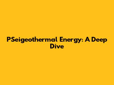 PSeigeothermal Energy: A Deep Dive