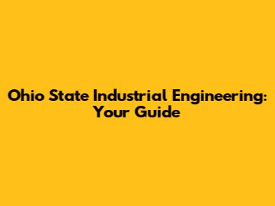 Ohio State Industrial Engineering: Your Guide