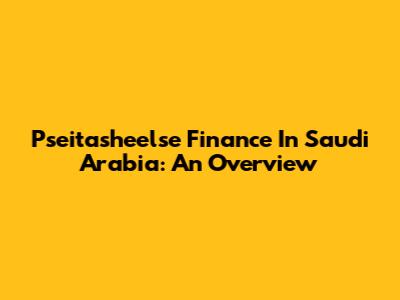 Pseitasheelse Finance In Saudi Arabia: An Overview