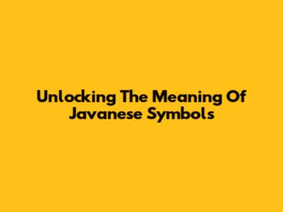 Unlocking The Meaning Of Javanese Symbols