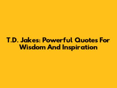 T.D. Jakes: Powerful Quotes For Wisdom And Inspiration