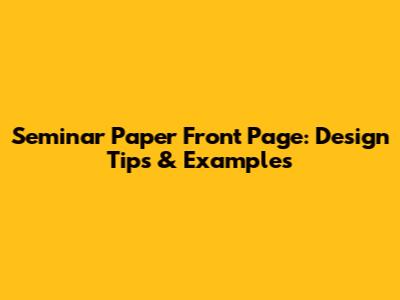 Seminar Paper Front Page: Design Tips & Examples
