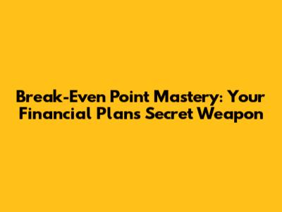 Break-Even Point Mastery: Your Financial Plan's Secret Weapon