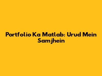 Portfolio Ka Matlab: Urud Mein Samjhein