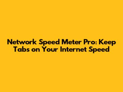 Why You Need Network Speed Meter Pro