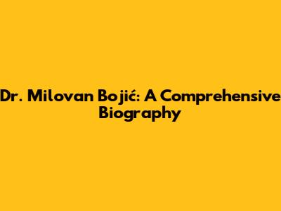 Dr. Milovan Bojić: A Comprehensive Biography