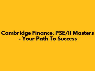 Cambridge Finance: PSE/II Masters - Your Path To Success