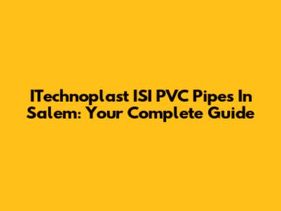 ITechnoplast ISI PVC Pipes In Salem: Your Complete Guide