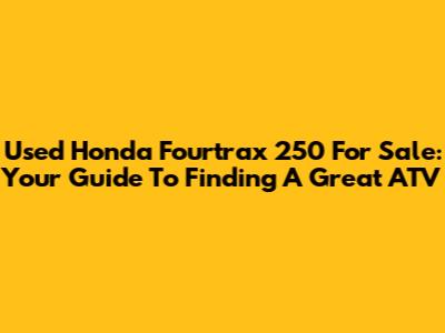 Used Honda Fourtrax 250 For Sale: Your Guide To Finding A Great ATV