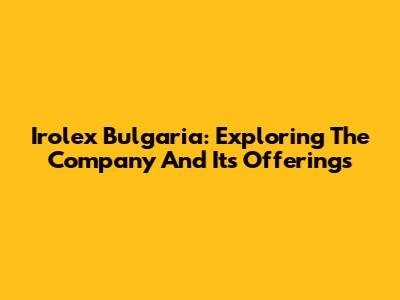 Irolex Bulgaria: Exploring The Company And Its Offerings