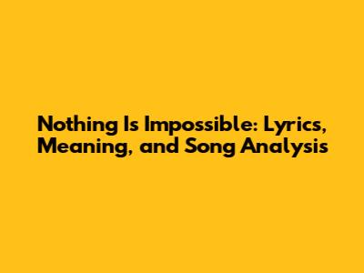 Hey music lovers! Ever gotten chills from a song that just hits you right in the feels? I know I have. Today, we're diving deep into "Nothing Is Impossible," a tune that's become an anthem for many. We'll break down the lyrics, explore what the song really means, and see why it's resonated with so many people. So, grab your headphones, get comfy, and let's unravel this musical masterpiece together. This song is more than just catchy; it's a powerful message wrapped in melody. We'll be looking at the song's core message, its impact on listeners, and the overall vibes it puts out there. Are you guys ready?
