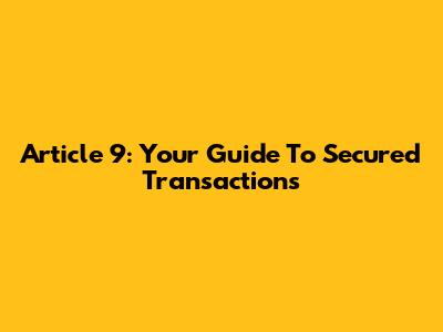 Article 9: Your Guide To Secured Transactions