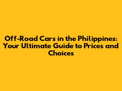 Factors Influencing Off-Road Car Prices in the Philippines