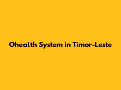 Understanding the Components of Timor-Leste's Ohealth System
